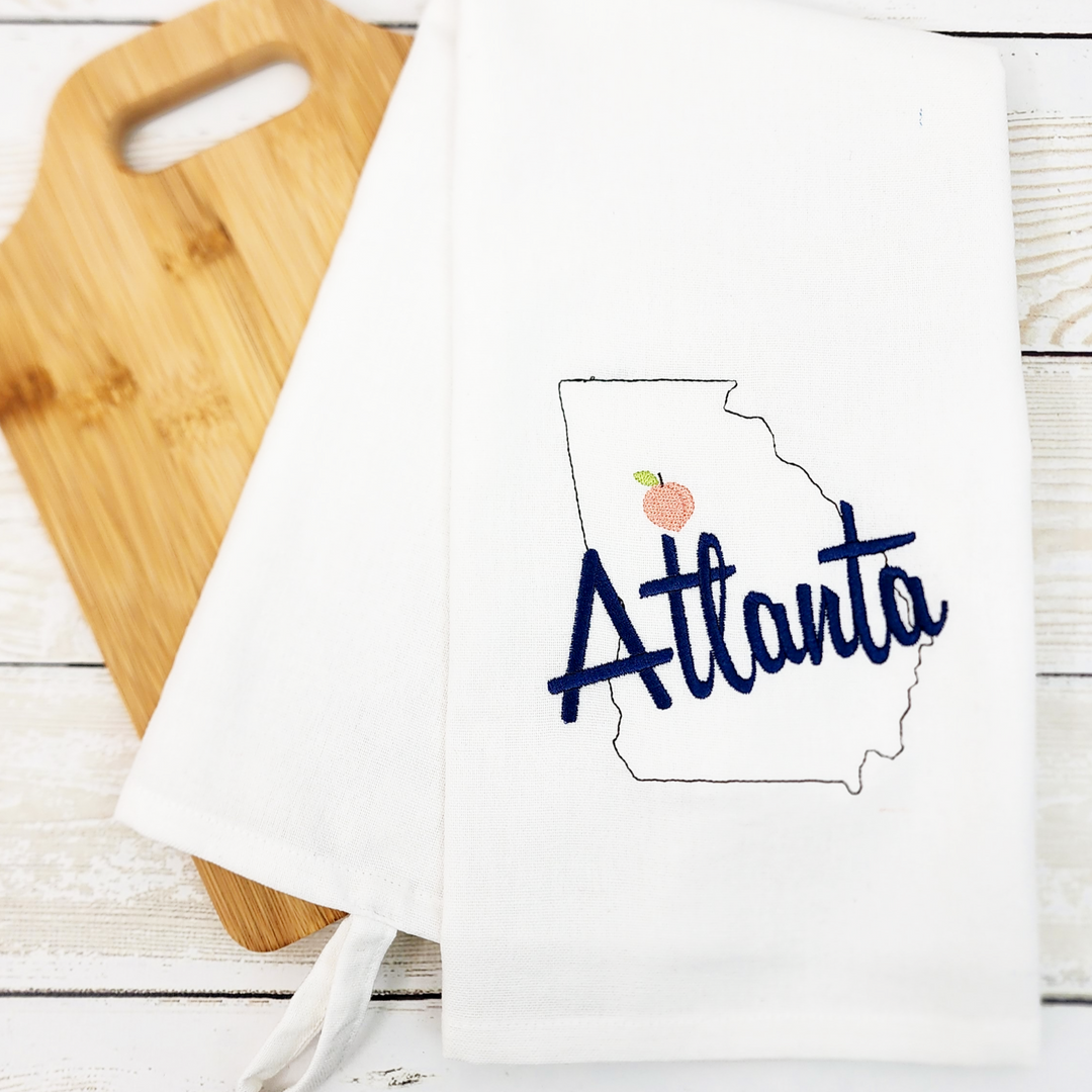 Show off your southern hospitality by gifting an Atlanta kitchen towel hostess, housewarming, or as a souvenir. Itfeatures a hang tab in the corner and are made of a quality cotton flatweave fabric. They are made to be used!!!