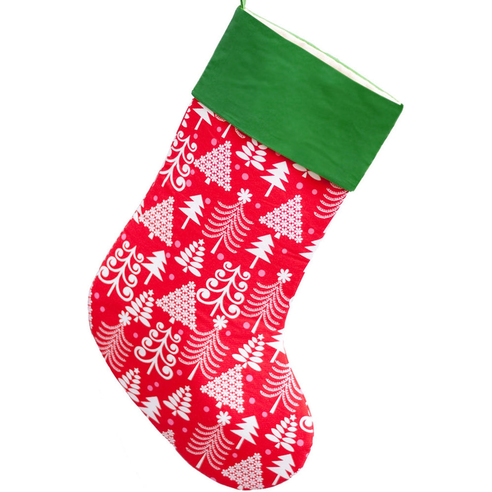 Handmade Personalized Christmas Stocking | Red Christmas Trees | Green Cuff