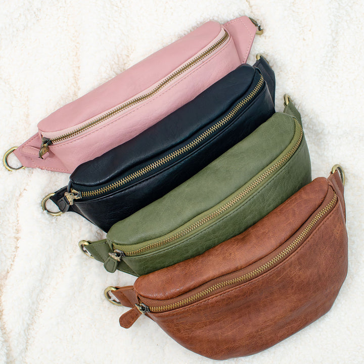 A sling or a belt bag, you decide! This bag is compact and super versatile. The Shiloh can be worn as a crossbody sling, a shoulder bag, or a belt bag. Crafted in our best selling tumbled buffalo vegan leather for a casual look and accented with a signature logo zip pull.