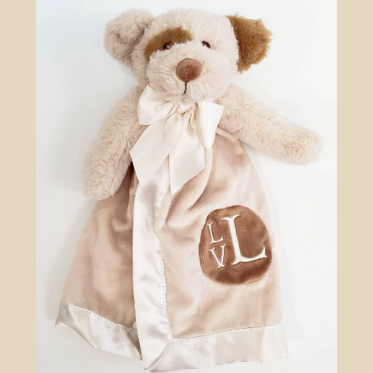 Brown Puppy Dog Monogrammed Baby Gift - Bearington Snugglers