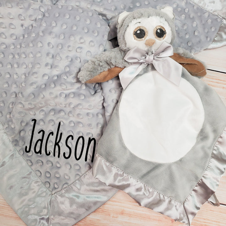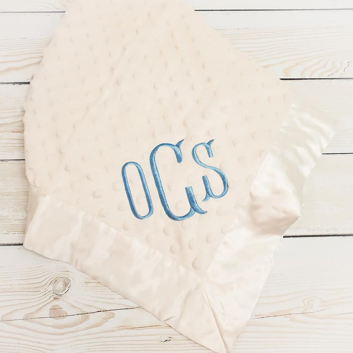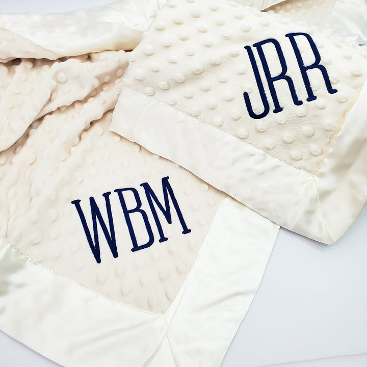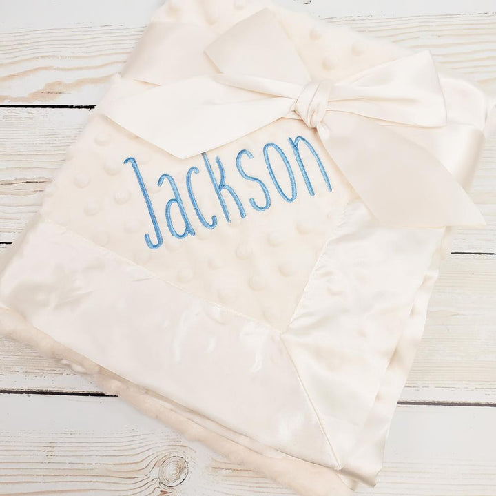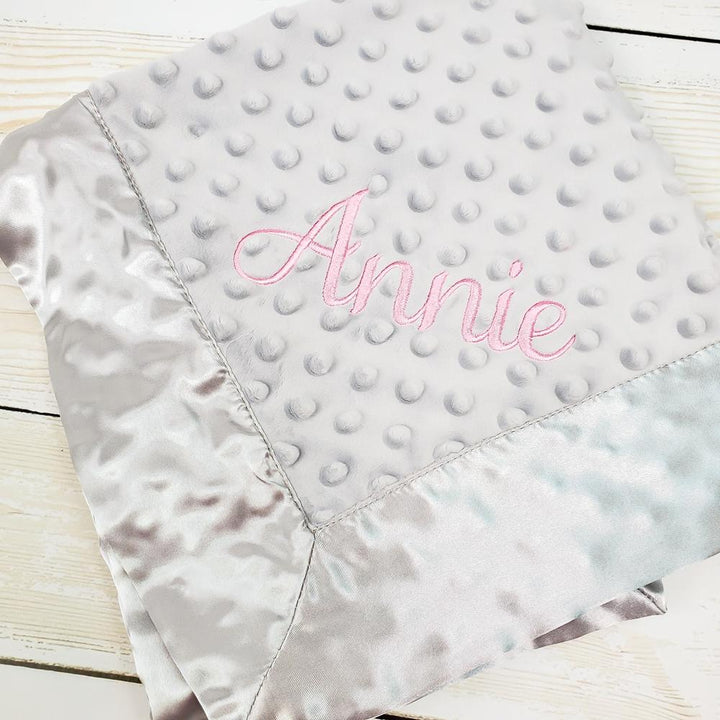 Super soft and cuddly minky dot blankets make a perfect baby shower gift. Silky satin binding and back are a favorite!